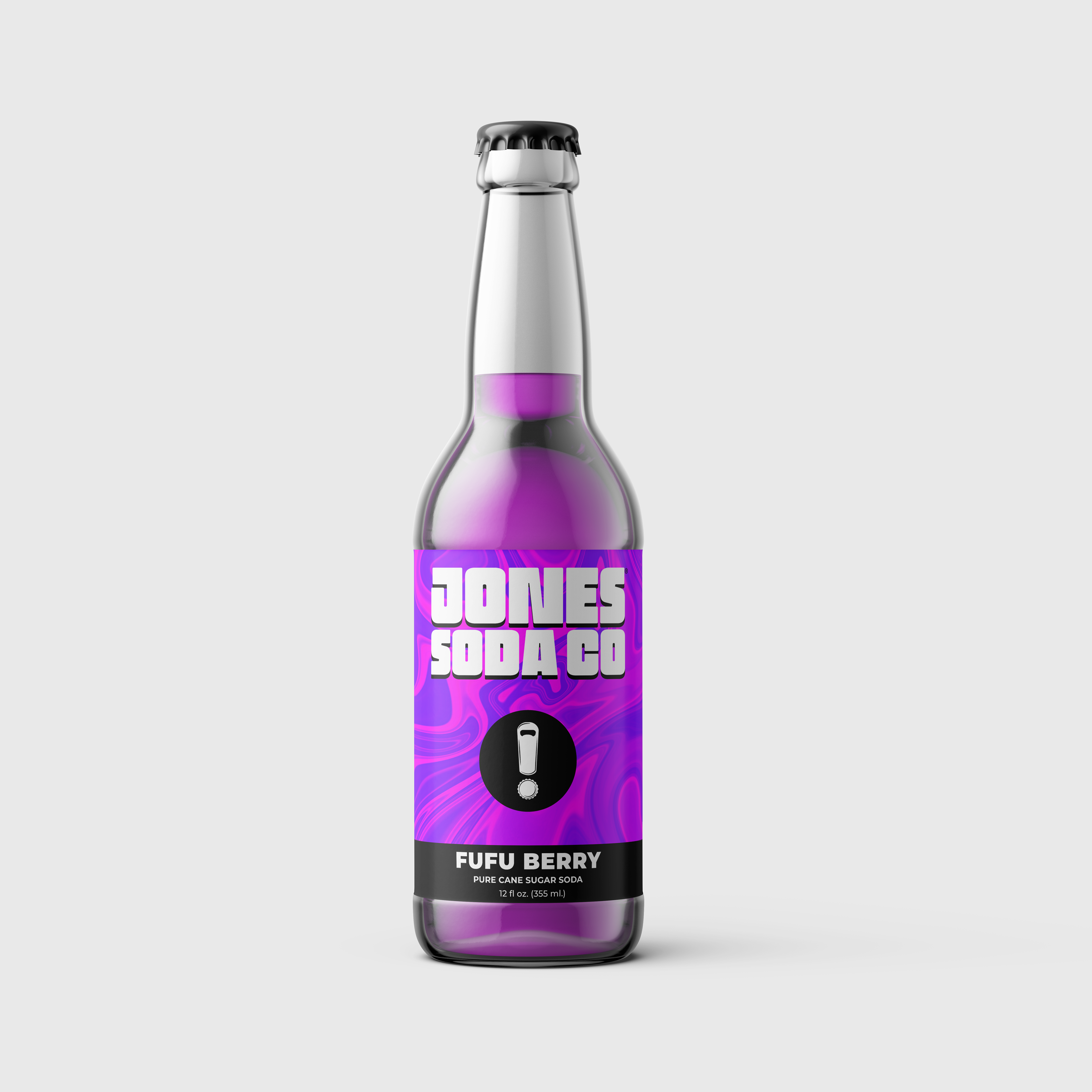 Jones Soda is known for having bold and unique flavors while also using all natural sugar as a main ingredient. The logo represents this boldness with the heavy typeface, as well as the bottle opener/cap representing an exclamation point. The patterns for each label were created with images of sugar which were then digitally altered to give a "liquid sugar" effect. The colors of the labels are based on the vibrant and neon colors the soda flavors themselves exhibit.
